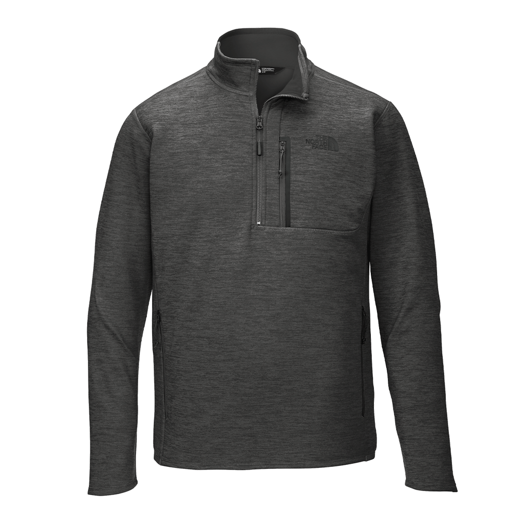 A professional look and a fashion forward look come together in The North Face Men's Dark Grey Heather Skyline Fleece Half Zip. The stylish, fitted cut, fleece is brushed for interior comfort and offers stretch for maximum mobility. Add a corporate embroidery to use these as part of company uniforms or a custom logo to support the crew during a team event. Perfect as an employee gift with organic hand feel, a center zipper, and chest and hand pockets, this is a must have fleece for almost everyone. Place an order today to have these on hand for whatever comes up in your company or organization.