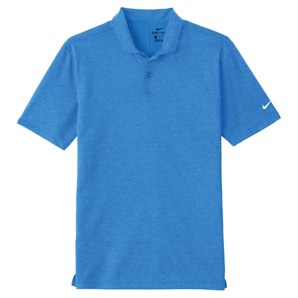 Make a lasting positive impression on the job candidates that attend the next corporate recruiting event by giving away the custom Nike Men's Photo Blue Dri-FIT Prime Polo. Recycled polyester withstands the punishment delivered by an active lifestyle. Attach a custom logo to turn the polo into a powerful marketing platform you hand out to everyone that passes your company booth at the next trade show. Side vents encourage the circulation of air to complement proprietary Dry-FIT moisture management technology. Pair the polo with dress slacks during the day and casual jeans when you go out at night.