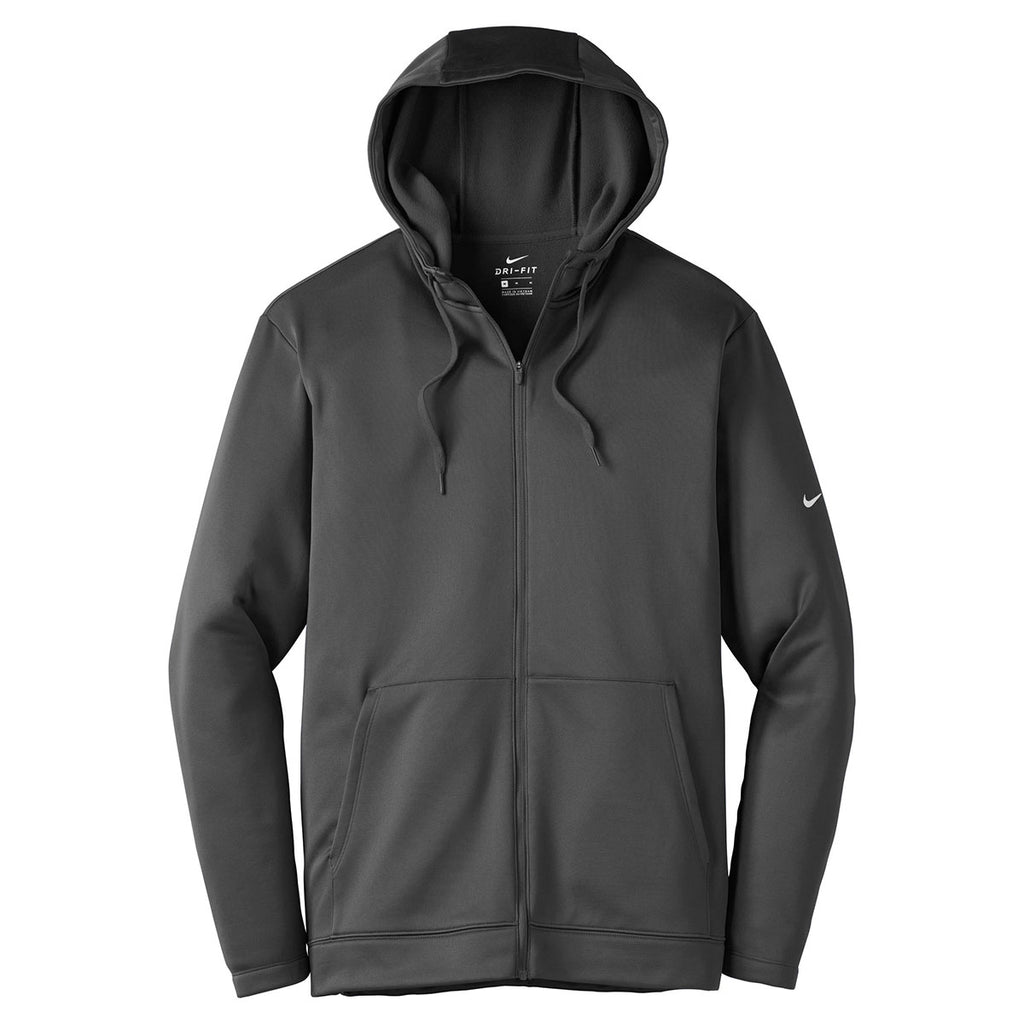 Unite the corporate team before the next big project by giving away the logoed Nike Men's Anthracite Therma-FIT Full-Zip Fleece Hoodie. Nike developed Therma-FIT technology to trap body heat, which makes the fleece hoodie perfect for active professionals that love to downhill and cross country ski. Moisture management properties allow you to push it to the limit and not have to worry about the discomfort caused by an abundance of moisture. Thumbholes increase the fabric coverage around the hands. Add your company logo on the large imprint area and watch your brand reach new marketing heights.