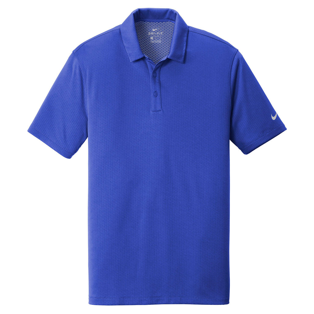 With an area for embroidery, the company logoed Nike Men's Game Royal Dri-FIT Hex Textured Polo represents the ultimate gift to hand out to your employees before a big golf tournament. Designed with 100% polyester, the textured polo feels smooth on the skin and withstands the punishment delivered by active lifestyles. Wear the polo to a professional networking event and put it on before a daylong bicycle ride. Moisture wicking performance prevents Mother Nature from dampening the day. Add a custom logo on the large imprint area to let everyone know your company sells the finest products and services.
