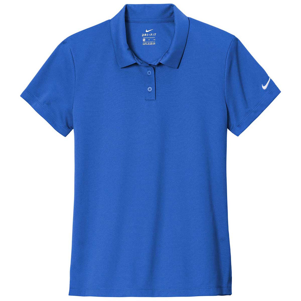 Head to the office or enjoy a round of golf in an embroidered Nike Women's Game Royal Dry Essential Solid Polo. The beautifully made classic polo can be used for anything from a company uniform to a solid choice for a corporate event with an embroidered custom logo. This must have polo provides Dri-FIT moisture management technology so your focus can remain on what you are doing rather than concern for sweat marks. The tailored feminine fit looks great with a custom design. Place an order today to use these as employee or end of the year gifts for all the people you know.