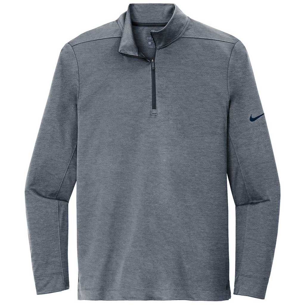 Hit the gym or the track in a custom embroidered Nike Men's Navy Heather Half Zip Cover-Up. This sleek cover-up stands out with a hex texture interior and subtle exterior texture that provides the ideal layer for warm ups and cool downs. Easily layer this embroidered cover-up to add a team name for team events or to use as part of a company uniform. The Dri-FIT management technology helps keep you dry as you stay in shape in the 100% polyester fabric that will be a hit for those that like to workout or those who prefer a more relaxed lifestyle. Add your company logo to use these as end of the year gifts for all you care about in life.