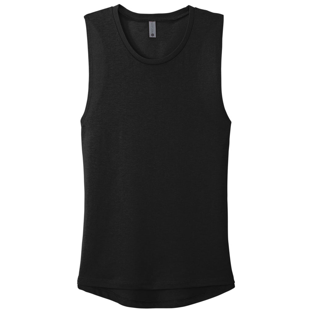 Add a custom screen print to the Next Level Women's Black Festival Muscle Tank for a fun and flirty look that many will adore. The lightweight poly and ring spun cotton blend has a rib knit neck and hemmed oversized armhole for an airy feel on those warm summer days. Add a company logo to use as a promotional item, employee gift, and much more to fit your needs. Try out something custom to build your warm weather options for a logoed apparel line. The slight drop tail hem adds coverage for this fitted tank that can go from the gym to the beach and to the club with ease.Highlights
