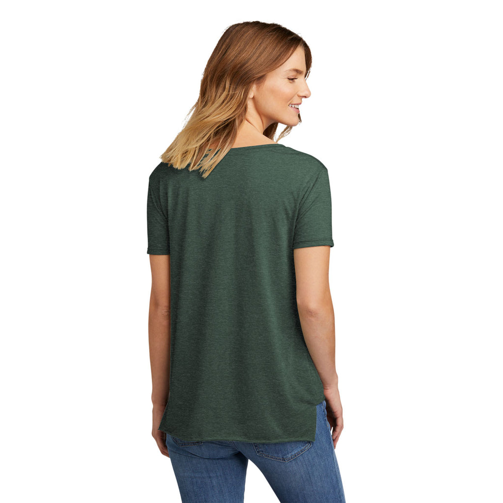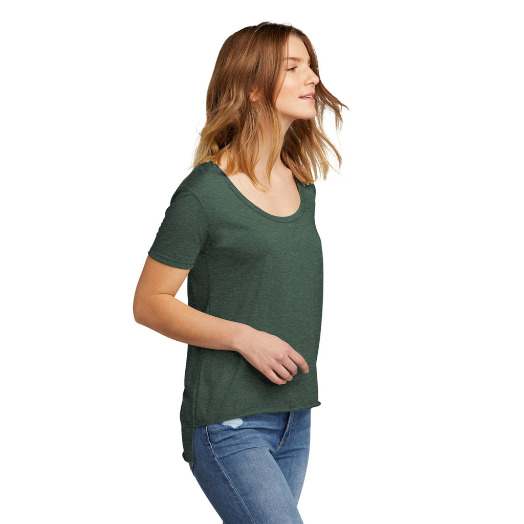 Amp up your tee collection with a custom Next Level Women's Royal Pine Festival Scoop Neck Tee. This takes the simple tee to the nest level with a scoop neck cut that provides flair. Add a company logo to use this as employee apparel or for some special employee event used for team or company building. Try out a custom logo to use for a team, organization, club, or just to add to your own wardrobe. The poly and ring spun cotton blend is soft, comfortable, and wearable with rib knit scoop neck and a relaxed fit. The raw edge creates an exaggerated drop tail hem for extra coverage.Highlights