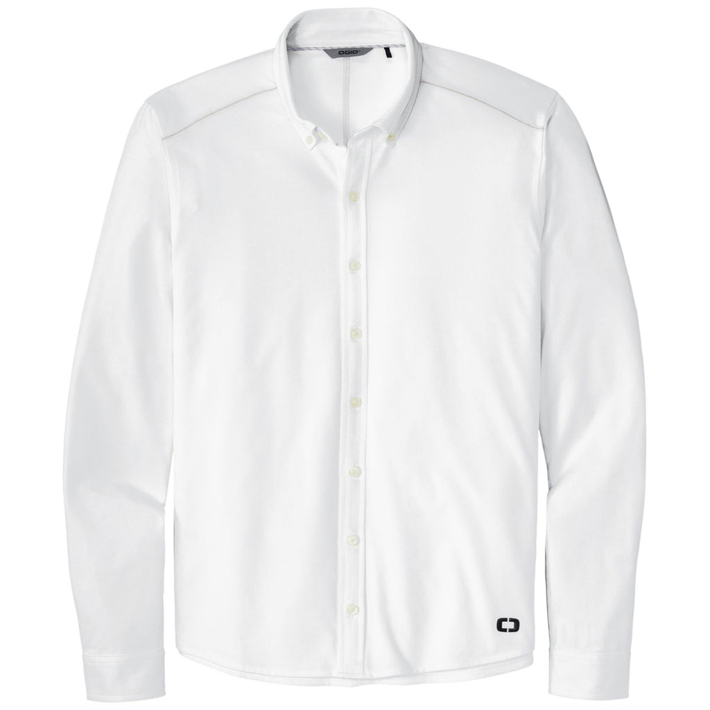 Enjoy embroidery on the OGIO Men's Bright White Code Stretch Long Sleeve Button-Up for an upscale look with the comfort of your favorite tee. Add a company logo to the lightweight cotton poly blend to use as a corporate uniform or general apparel for those at the highest levels of your organization. The tonal contrast stitching, reflective silver piping, and silver tape at the center back neck add a bit of flair to the overall look. A button-down collar, cuffed sleeves, and shirttail hem complete the put together appearance. Wear tucked in or untucked to add versatility.