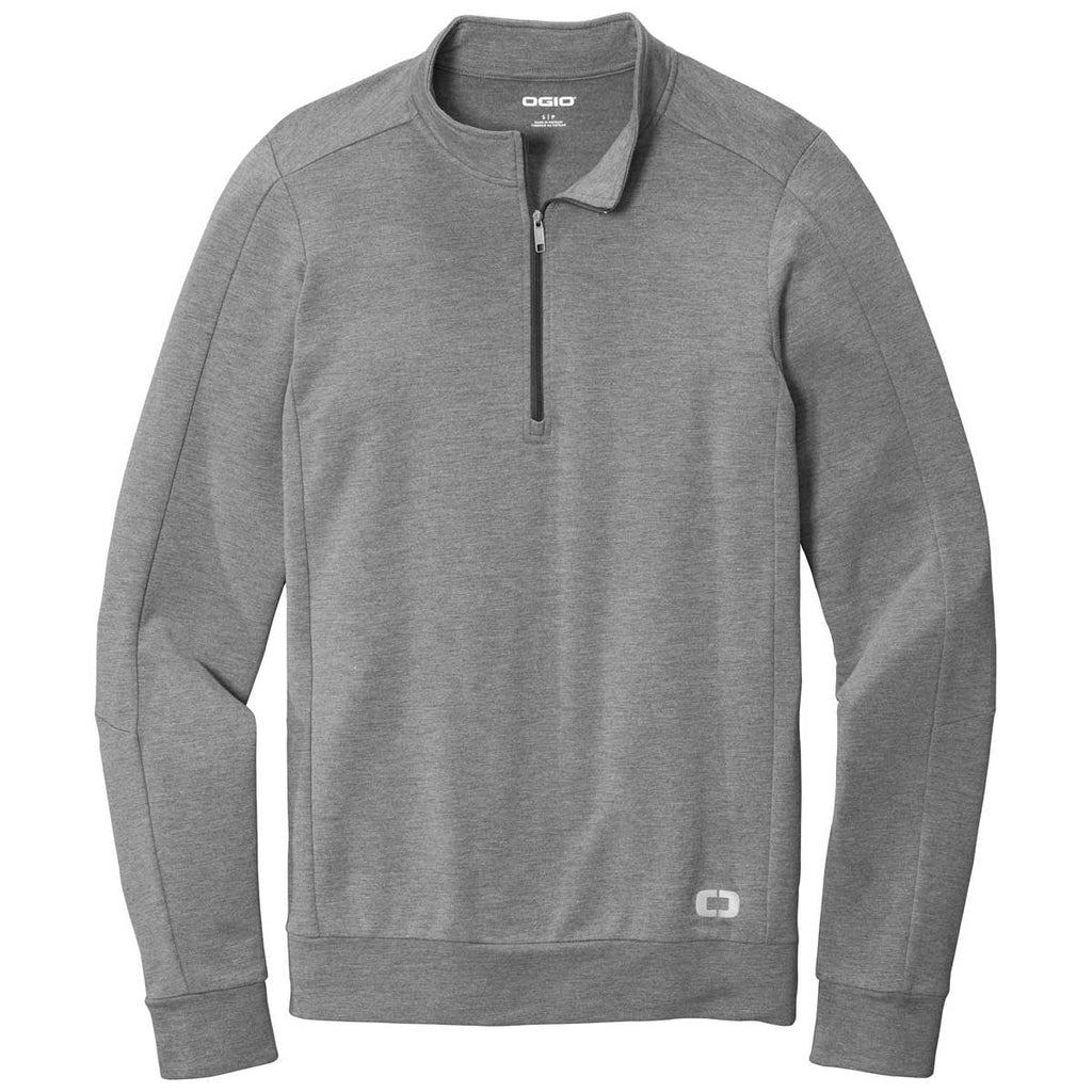 Add custom embroidery to the OGIO Men's Petrol Grey Heather Luuma Half Zip Fleece to create a look all your own. Meant to be used as active wear, this 1/2 fleece easily goes from the gym to home and back again each and every day. Designed for comfort, the 1/2 zip has a self-fabric cadet collar, side panel details, and an open hem for comfort whether going for a quick jog or heading to the gym for hours at a time. Add a company logo to give these as employee gifts for those who work their hardest each day.