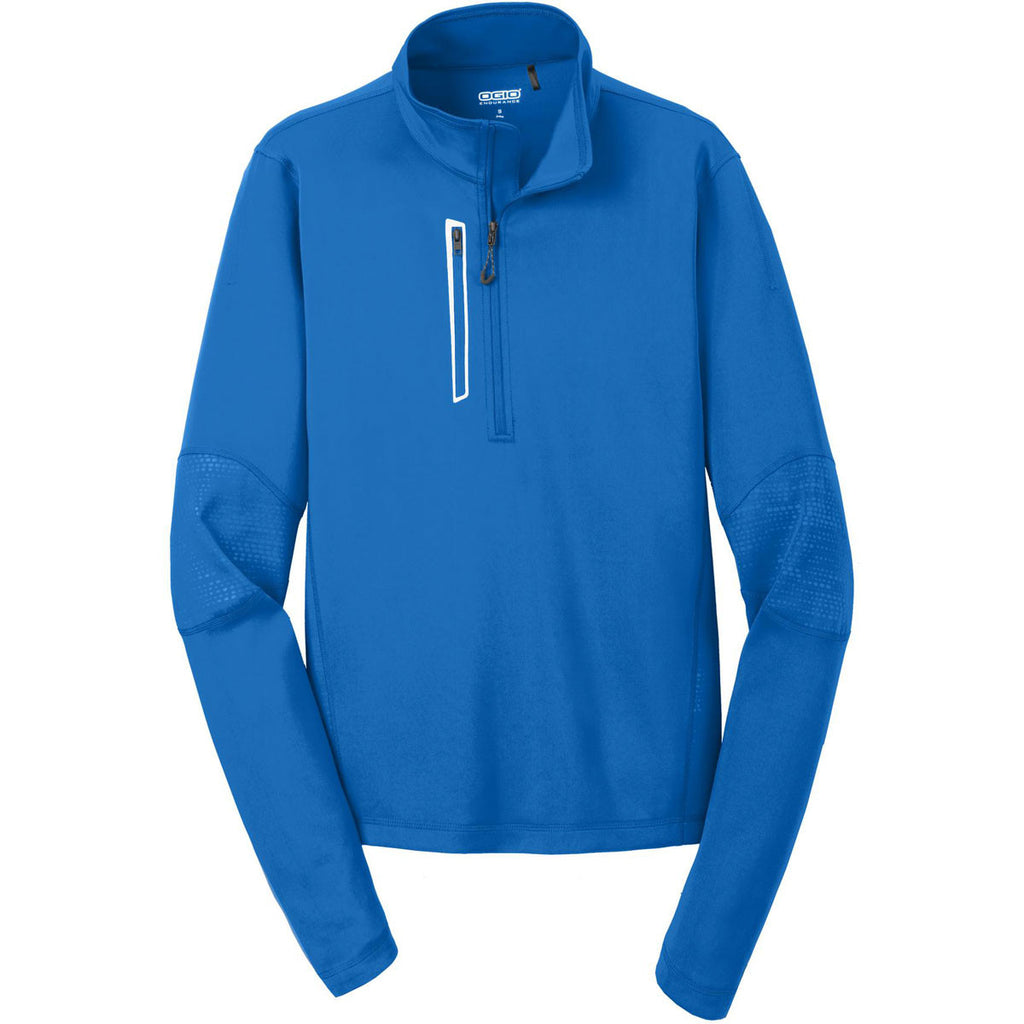 When you're on that last leg of the journey, which will give out first your will or your equipment? Well, if you're opting for an OGIO Endurance Men's Electric Blue Fulcrum Quarter-Zip, you're going to have to wait an awfully long time until the equipment fails you. That's what a strong, stretchy 95/5 poly/spandex jersey fabric will do, as well as reflective welding around the zippered pocket and a zip-through cadet collar. This is the kind of quarter-zip that's made for active people, even though it has enough built-in comfort to feel good even when you're leaning more toward couch potato.