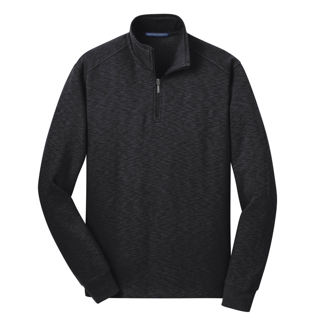 Port Authority Men's Black 1/4 Zip Slub Fleece Pullover