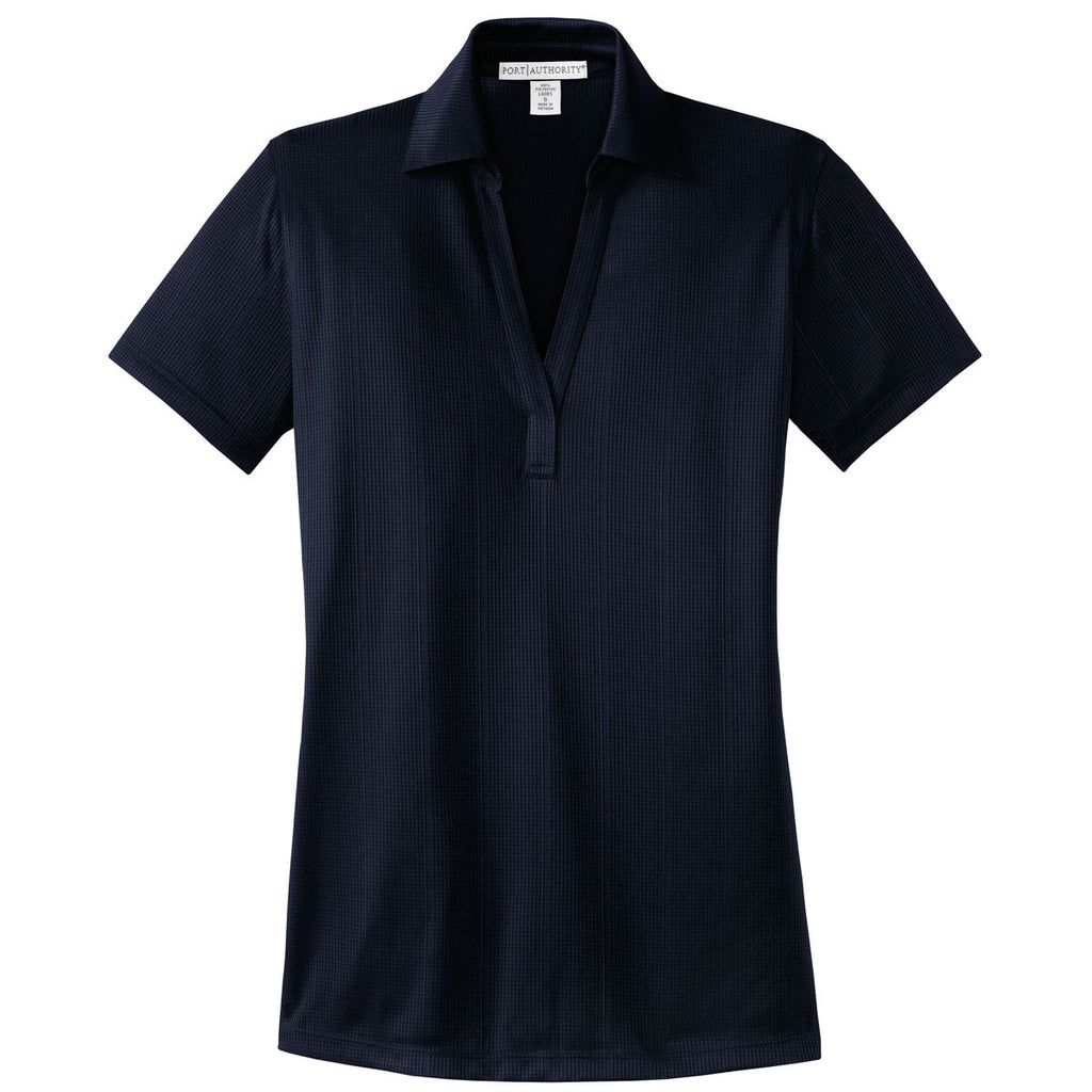 Want a polo shirt that doesn't look like it was grabbed off the Men's rack and then labelled women's in black marker? Then the Port Authority Women's True Navy Performance Jacquard Polo is just the one for you. It features a gently contoured silhouette that resembles nothing you can find in the men's section, while the self-fabric collar is a little off the beaten path of polo shirts. The 3.8-ounce, 100% polyester fabric is light and breathable too, ensuring that you can wear this polo all day and never feel out of your element. With your company's logo on the front, you'll be able to give your female employees a professional uniform that flatters and never stifles.Corresponding Men's Style: Port Authority Men's True Navy Performance Jacquard Polo