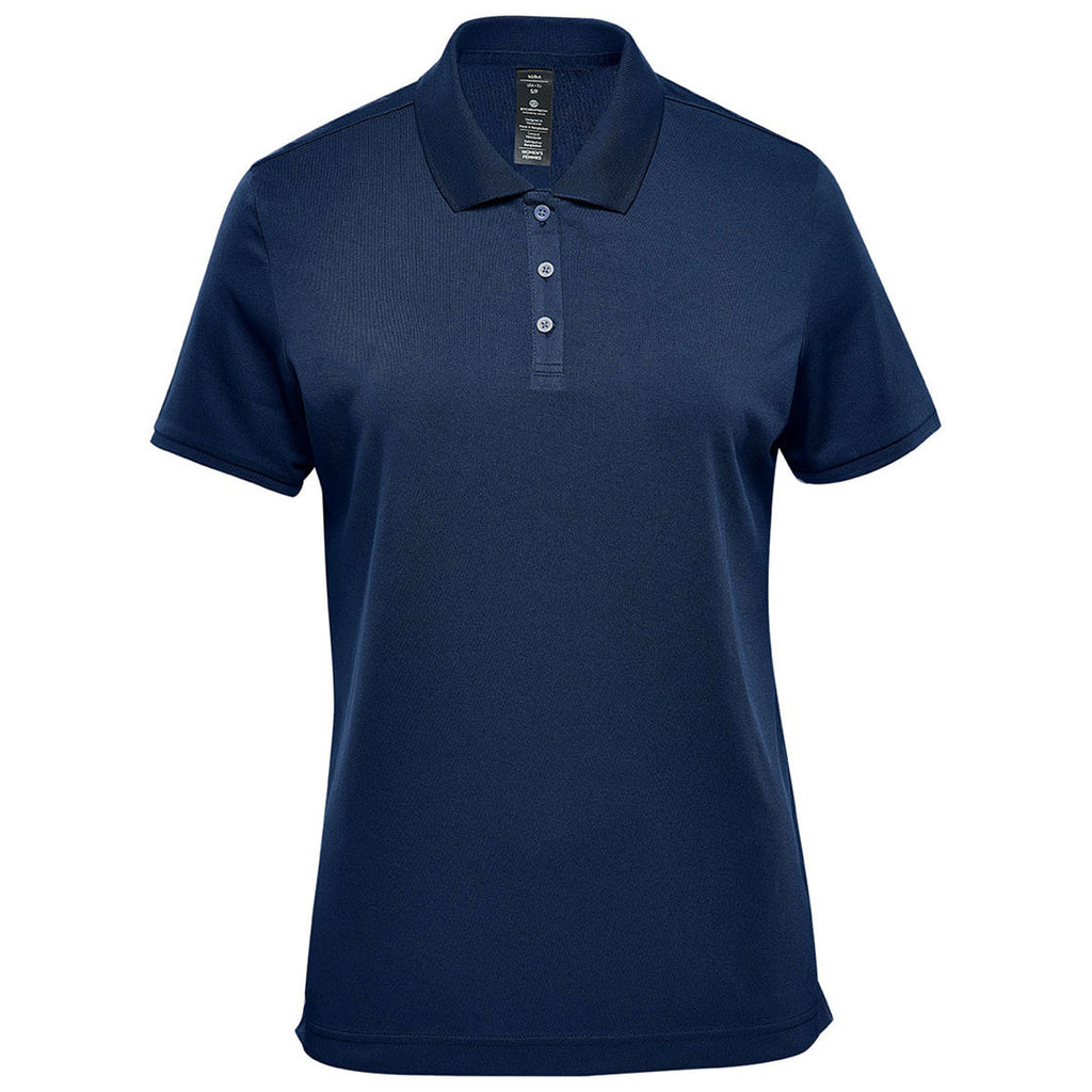 Look and feel great in the Stormtech Women's Navy Sirocco Sports Polo with embroidery in your custom design. This polo provides a high quality look but is built to last with durable polyester pique and moisture management to help maintain comfort. Add a company logo to use as uniforms for those interacting with customers or pair with a jacket to utilize as corporate apparel. The athletic silhouette of the polo makes it great for after game interviews and meetings with those in charge. Place an order today to make sure these polos are part of your logoed apparel line.Highlights