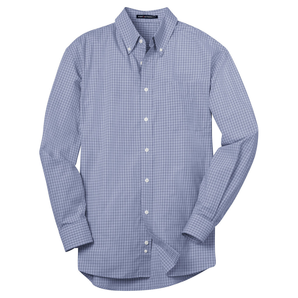 Dress shirts should be three things: stylish, comfortable, and professional. The Port Authority Men's Navy Plaid Pattern Easy Care Shirt fits all three. In fact, you'll find that these goals very much line up with your corporate goals, which is why this shirt is perfect for matching a sense of style with your individual brand. Create your business apparel by using our embroidery process to affix your logo to this shirt.Corresponding Women's Style: Port Authority Women's Navy Plaid Pattern Easy Care Shirt