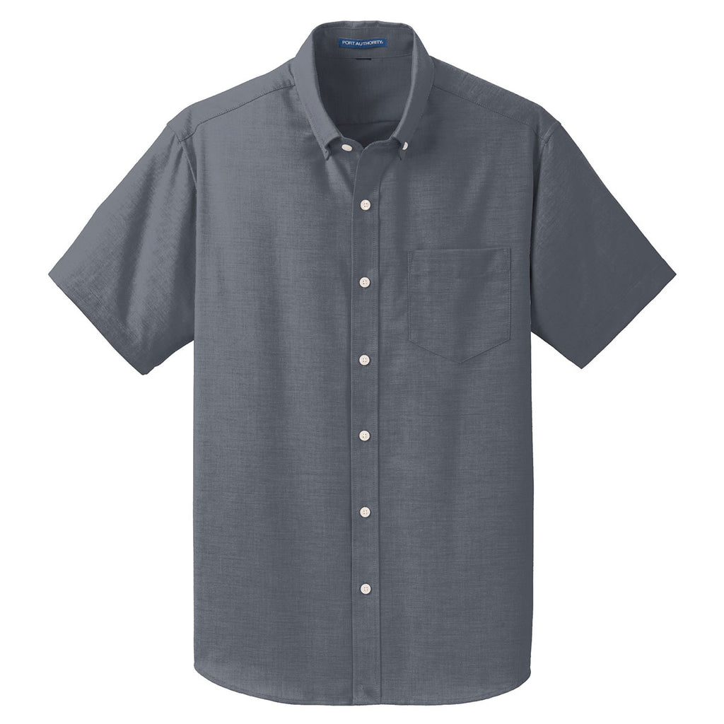 Dress shirts should be three things: stylish, comfortable, and professional. The Port Authority Men's Black Short Sleeve SuperPro Oxford Shirt fits all three. In fact, you'll find that these goals very much line up with your corporate goals, which is why this shirt is perfect for matching a sense of style with your individual brand. Create your business apparel by using our embroidery process to affix your logo to this shirt.Corresponding Women's Style: Port Authority Women's Black Short Sleeve SuperPro Oxford Shirt