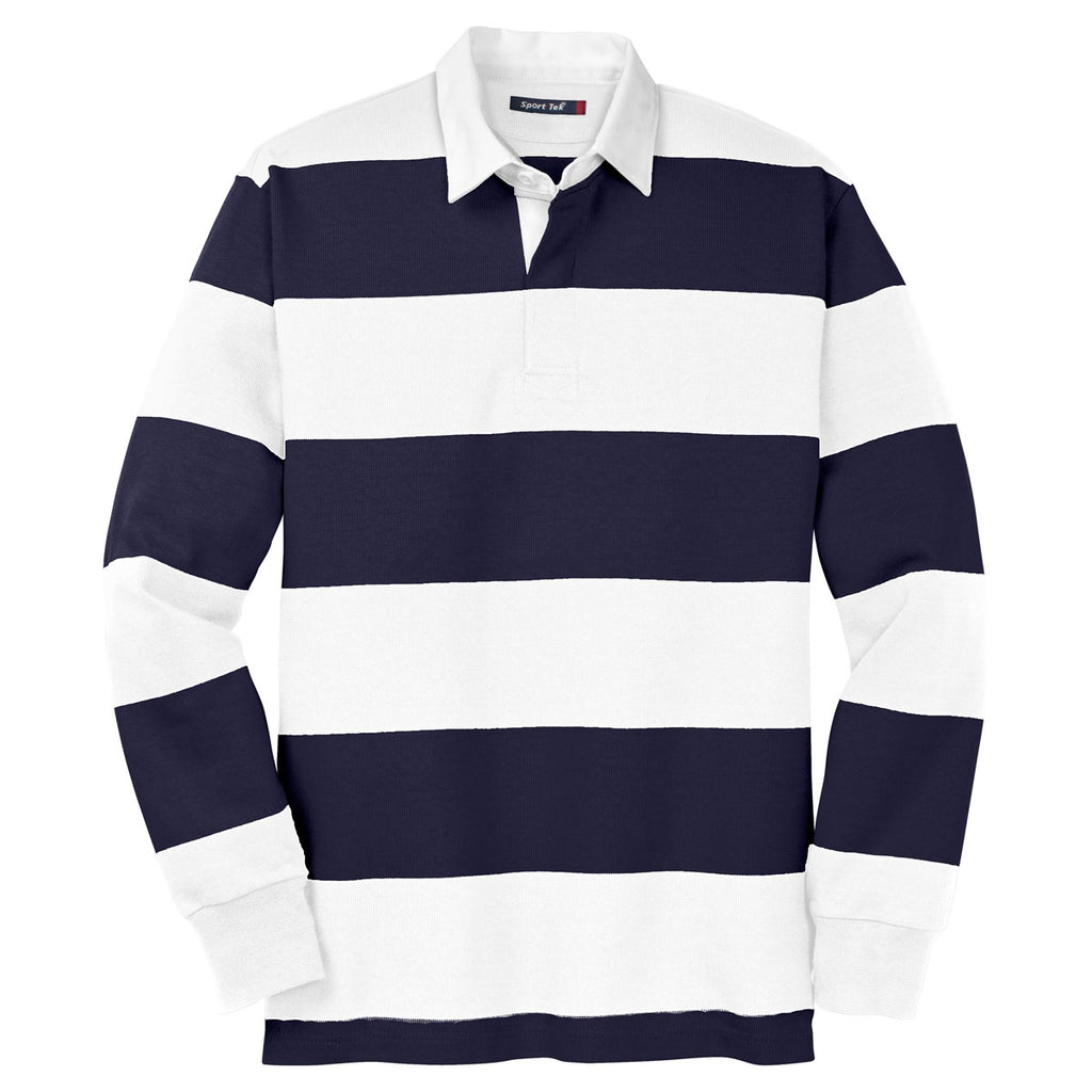 Sport-Tek Men's True Navy/White Classic Long Sleeve Rugby Polo
