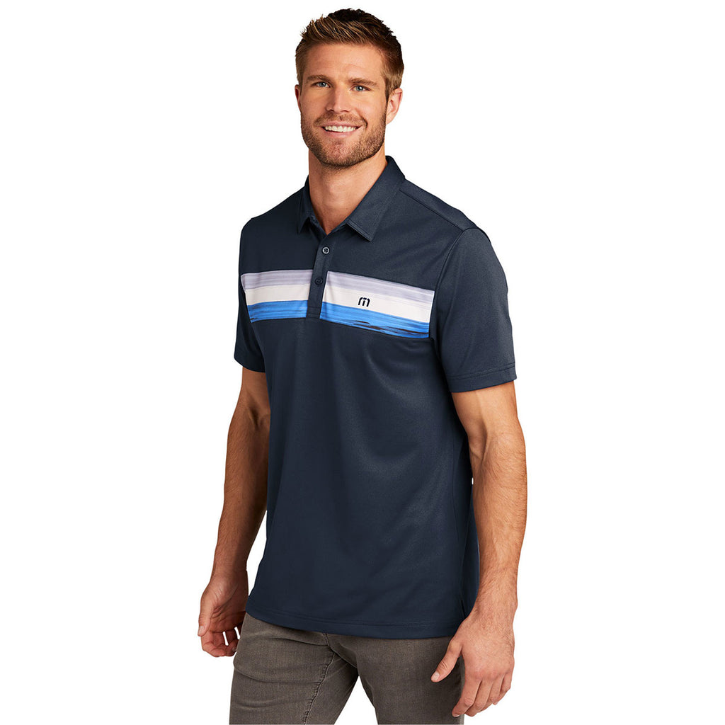 TravisMathew Men's Blue Nights Cabana Chest Stripe Polo