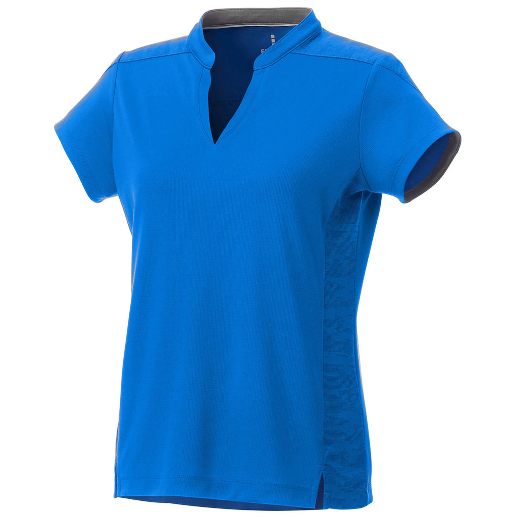 Add a custom logo to the Elevate Women's New Royal Piedmont Short Sleeve Polo that has a subtle graphic and reflective details. This stylish polo offers a hidden button placket, shaped seams, a tapered waist, and sleek stand collar for a silhouette that any woman can love. Don't let the details fool you, this polo also offers moisture-wicking, snag-resistance, UPF 40+, and wash and wear performance which makes it perfect as employee apparel or employee gifts when a company logo is added. The polyester double knit birdseye mesh knit will stand up to many days of work and play.Corresponding Men's Style:Elevate Men's New Royal Piedmont Short Sleeve Polo