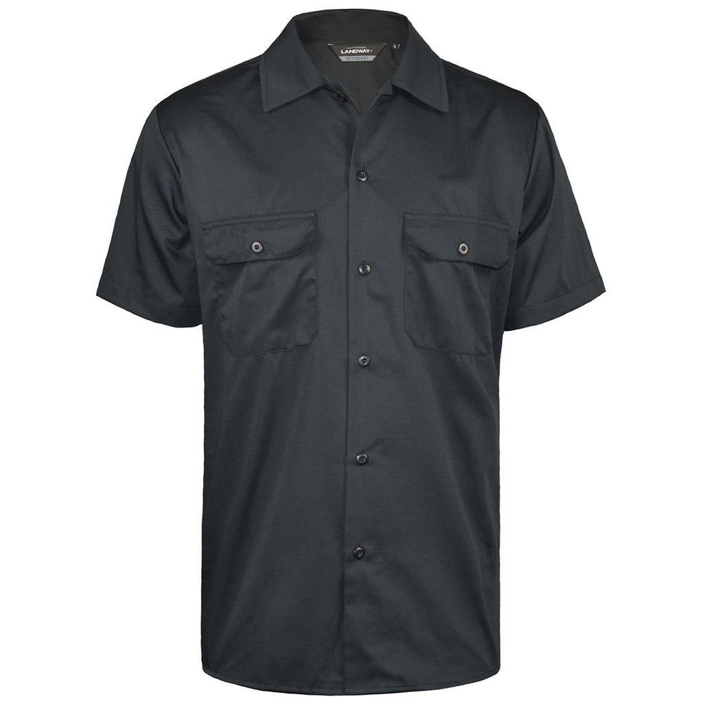 Choose a corporate logo for the Landway Men's Black Wesley Short Sleeve Work Shirt for a convenient uniform option for almost any employee. The relaxed fit of the wrinkle resistant shirt allows for a range of movement and a clean-cut look throughout the day. Add a company name, emblem, or other embroidery image to fit your needs. Place an order today.Highlights