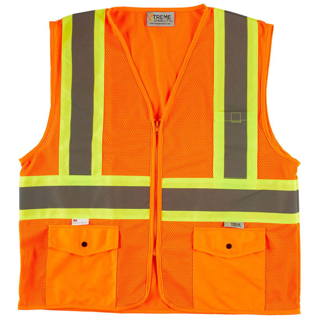 Xtreme Visibility Unisex Orange DOT Class 2 Contrast Stripe Zip Vest
