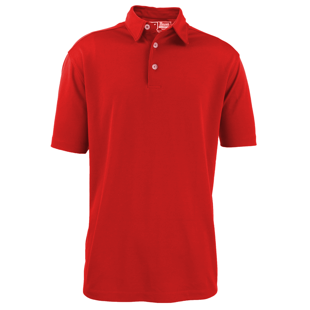 The logo-embroidered Zusa Men's Red Everyday Pique Polo Shirt from Zusa offers the comfort of cotton with the performance of polyester. The result is a custom polo that's great for the golf course and even better for the office when you add your custom embroidered company logo. These personalized polos are eco-friendly too! Each polo is made using 17 recycled plastic bottles, so you can rest easy knowing you made a corporate apparel choice that's good for your business and good for the planet.