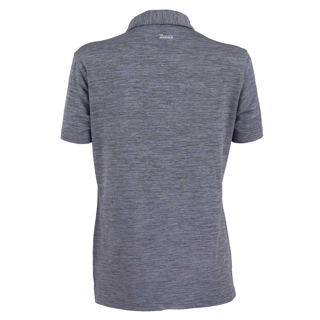 Corresponding Style: Zusa Men's Steel/Black Heather Stripe Polo