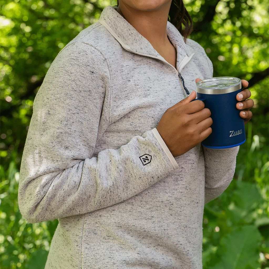 The Zusa Women's Oatmeal Chilly Fleece Quarter Zip has what it takes to be your favorite corporate layering option all fall and winter long. These custom quarter zips for women are made from sustainable fabric using 4 recycled plastic bottles each. The fabric isn't just eco-friendly though, it's also warm, comfortable, and stretchy! Just add your custom embroidered company logo and have the delivered right to your door in just a few days.