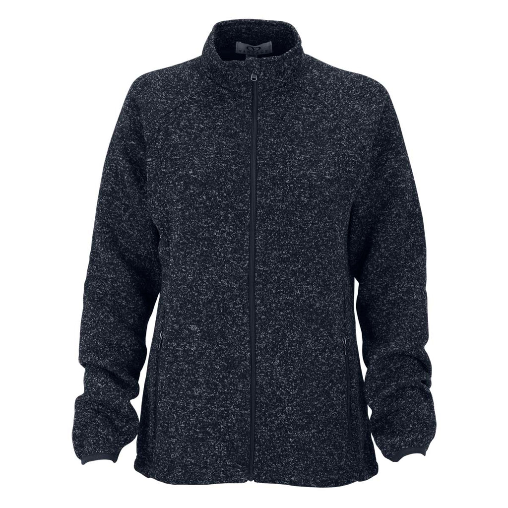 Ideal to wear for every season, the custom logoed Vantage Women's Navy Heather Summit Sweater-Fleece Jacket redefines the meaning of versatility. Wear the jacket in late spring, as well as when the temperature plummets below freezing in winter. Front princess seams and the stand-up collar bring high-end fashion into the workplace. Stretch binding at the cuffs makes the jacket perfect for wearing on outdoor adventures. Secure the inner storm flap and chin guard to prevent wind gusts from causing discomfort. Attach your company logo on the large imprint area to gain exposure for your products and services.Corresponding Men's Style: Vantage Men's Navy Heather Summit Sweater-Fleece Jacket