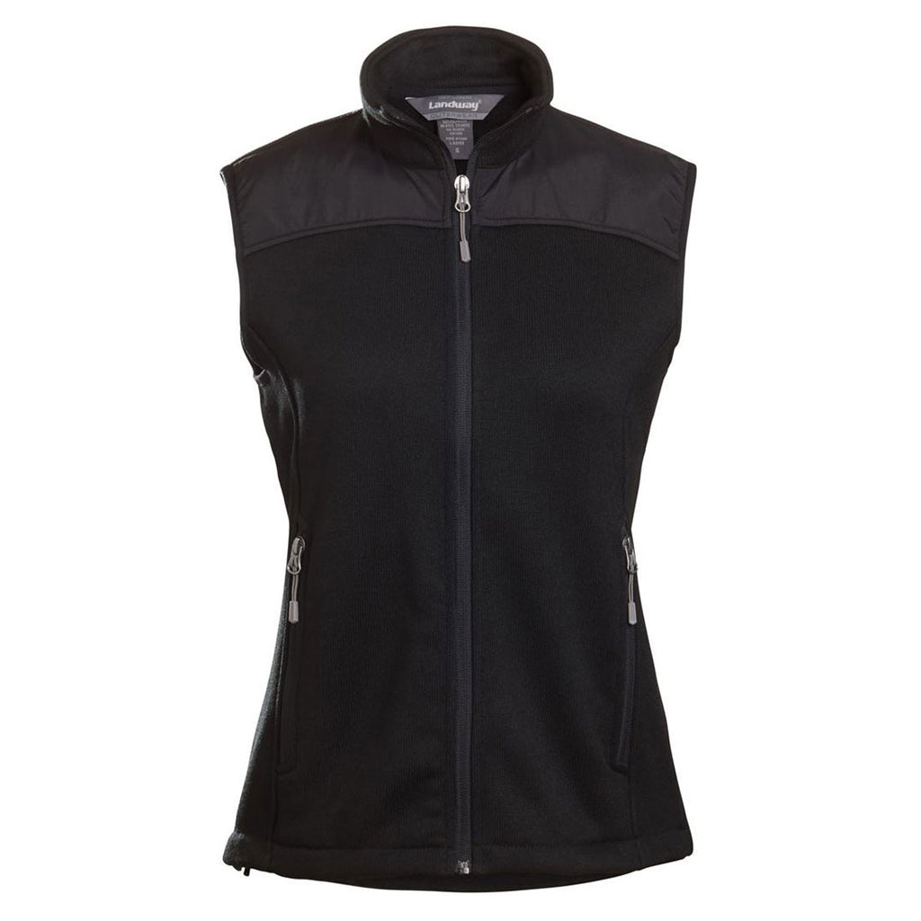 Put on the wind and water resistant embroidered Landway Women's Black Captain Vest to remain warm and dry any season of the year. Sweater-knit fleece creates an additional fabric layer that traps body heat to generate warmth. Making this layering piece great for a day at the office and while also being a good addition for an outdoor adventure. Rugged 100% polyester resists the types of rips and tears that send other styles of cold weather corporate apparel to the dumpster. Open bottom hems highlight the stylish design of the multi-purpose vest. Attach your corporate logo to turn potential customers into lifelong patrons of your business.Corresponding Men's Style: Landway Men's Black Captain Vest