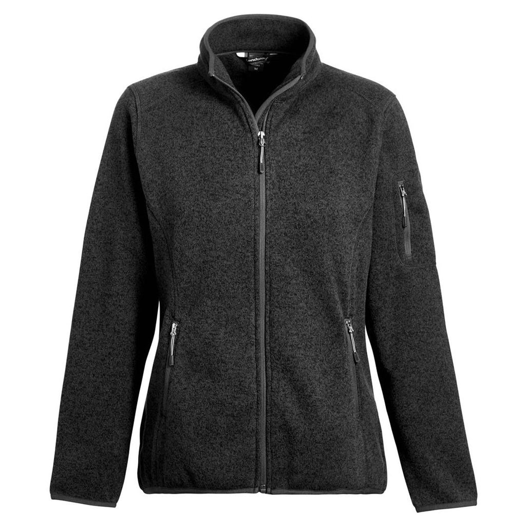 The custom logoed Landway Women's Heather Black Ashton Sweater Knit Fleece creates fashion diversity. You can wear the stylish corporate apparel as a sweater indoors or as an outer layer that protects you during cold weather camping trips. The visually appealing slim fit gets your team of high achieving women noticed in the field. Make the attention count by attaching your company logo on the large imprint area. Your employees will actually enjoy wearing this piece of corporate apparel with it's comfortable construction and stylish appearance. Raglan sleeves enhance the aesthetic appeal of the all-purpose sweater knit fleece.Corresponding Men's Style: Landway Men's Heather Black Ashton Sweater Knit Fleece