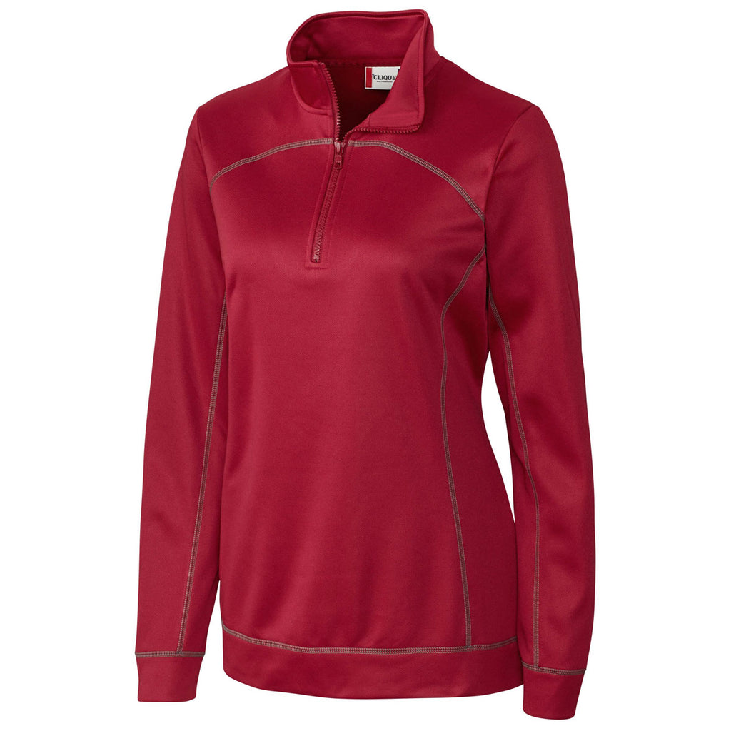 With super soft fleece on the inside, the logoed Clique Women's Darkest Red Helsa Half Zip does a great job of trapping body heat to keep you feeling warm all day long during weekend camping trips. The shiny polyester fabric remains in mint condition even after going through years of high performance use. Moisture wicking technology makes the half zip jacket perfect for layering over a Clique tee or as the middle layer of a cold weather fashion ensemble. Add a custom logo on the large embroidery area to shine the marketing spotlight on your products and services.Corresponding Men's Style:Clique Men's Darkest Red Helsa Half Zip