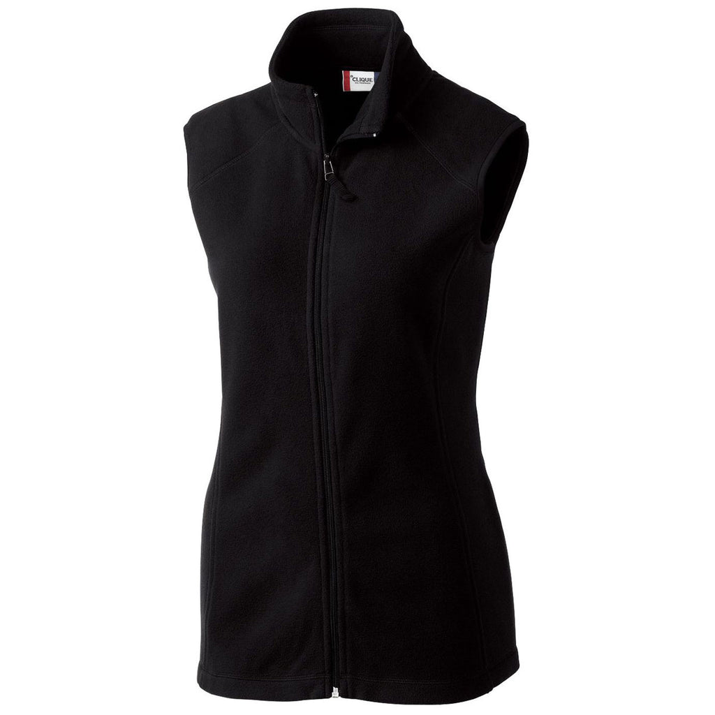 Take company apparel style to the next fashion level by ordering the Clique Women's Black Summit Full Zip Microfleece Vest for the women on your high achieving team of professionals. Spandex trimmed armholes allow you to let it rip when you tee off at the next corporate sponsored golf tournament. Add a custom logo on the embroidery area to associate your company with high quality products and services. The 100% polyester microfleece vest resists rips and tears to give you active wear that lasts for years to come. Raglan piecing creates a geometrically stunning vest to wear for all occasions.Corresponding Men's Style:Clique Men's Black Summit Full Zip Microfleece Vest