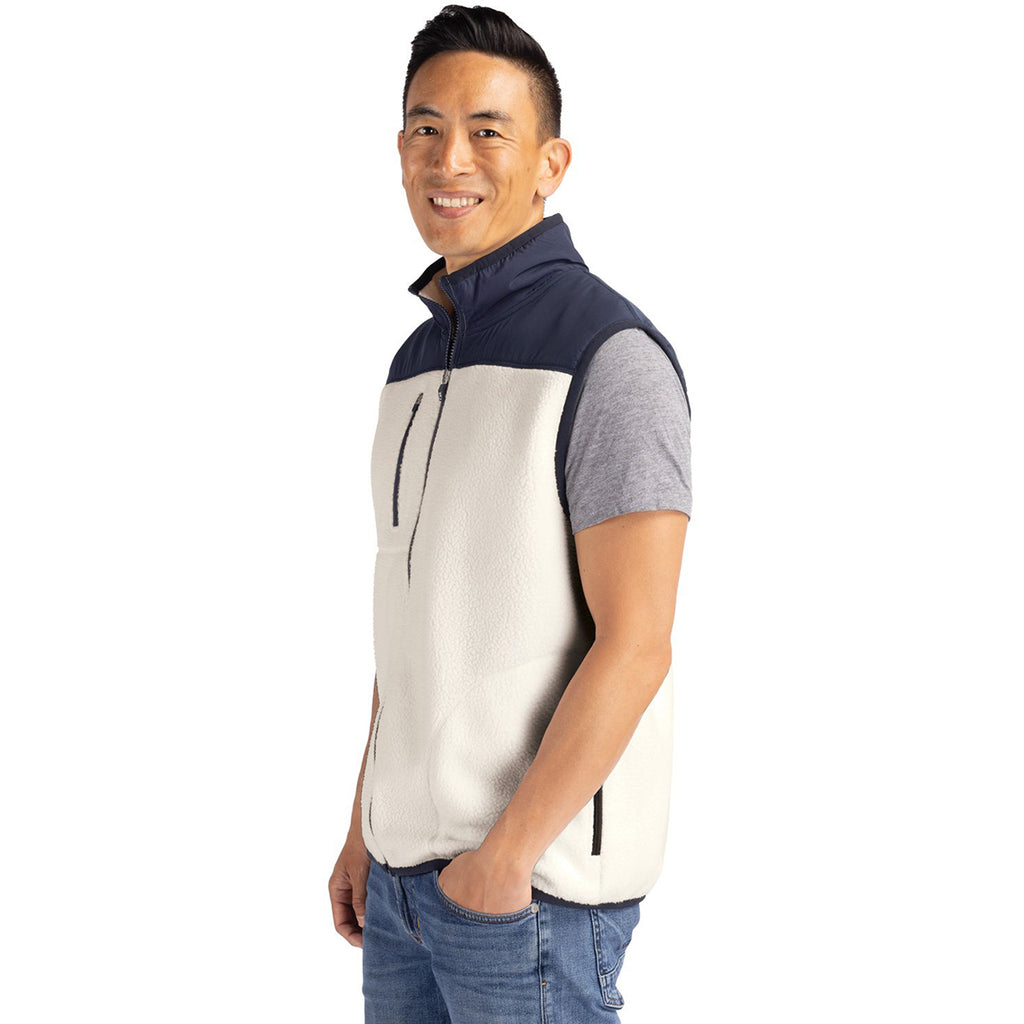 Cutter & Buck Men's Shell/Navy Blue Cascade Eco Sherpa Fleece Vest