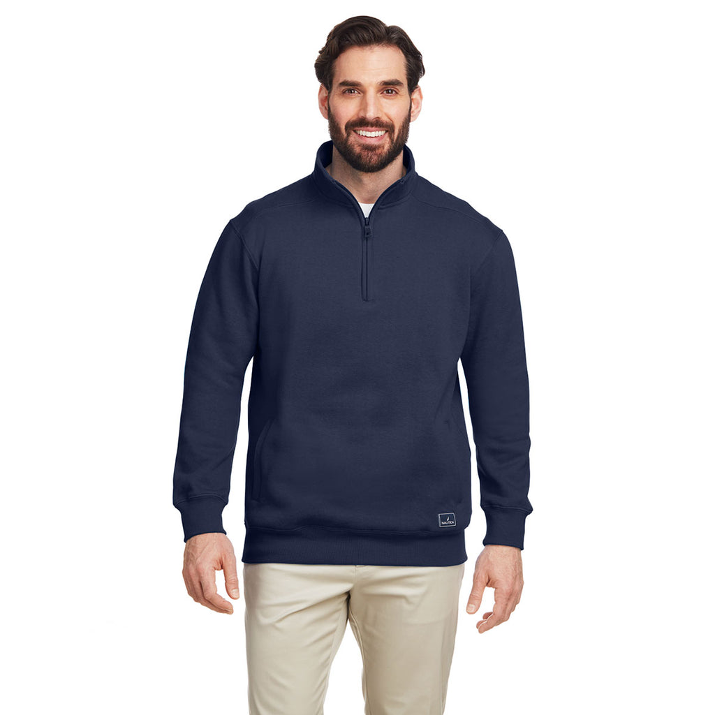 Relax and enjoy a custom embroidery Nautica Men's Nautica Navy Anchor Quarter-Zip Pullover with your custom logo proudly displayed. This simple pullover means you can easily layer over whatever you choose and still create a professional look that can serve as part of a corporate uniform for employee events or just to wear on more relaxed days or special events. The cotton polyester fleece blend is soft with a striped neck tape, ribbed cuffs and hem, and welt handwarmer pockets for when the weather turns chilly.