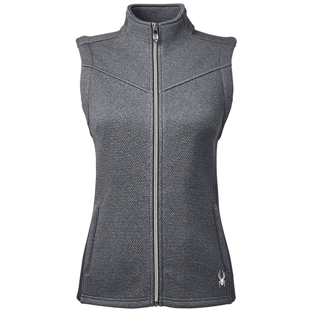 Choose custom embroidery for the Spyder Women's Black Heather/Polar Pursuit Commuter Vest for an upscale look that will be a hit with all who see. This dual colored vest is a must have on those crisp days when there is a slight chill in the air. Made of pillow tech fabric, the lightweight vest has a warmth retaining fill with double knit fleece and a shiny metallic zipper with the Spyder brand. Add a company logo to create an employee gift that can be worn as employee apparel or on days off. Hand pockets zip closed to keep small items secure whether working a full shift or hanging out with friends.