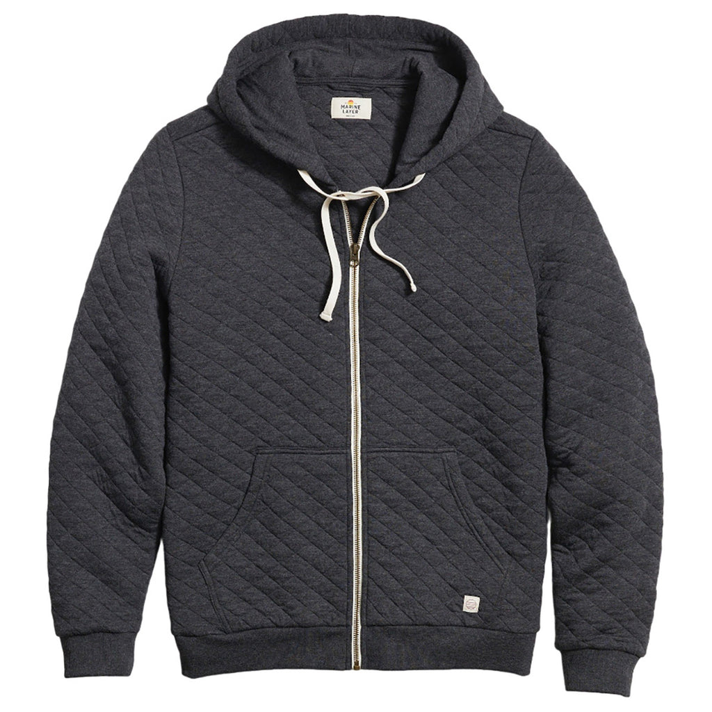 Marine Layer Men's Dark Heather Grey Corbet Quilted Full Zip Hoodie