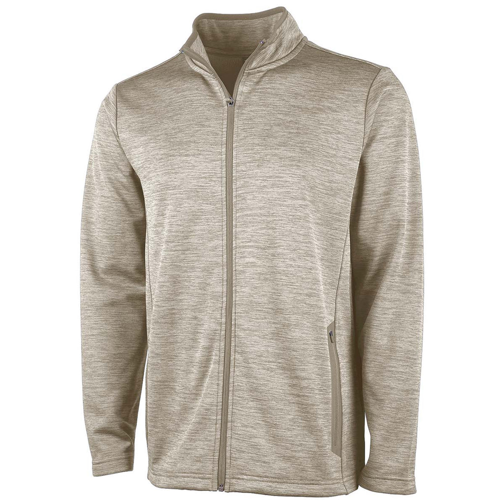A company logo will make the Charles River Men's Oatmeal Brigham Knit Jacket pop as you head to work or enjoy some free time. Made of 100% polyester this mock neck full zip jacket is simple, yet noticeable as a statement piece. The solid color jacket has brushed fleece inside for warmth and zippered inseam pockets to keep items secure. Add a custom logo to use these as part of team uniforms and warm-up gear for those who play ball, run track, or participate in any sports. Also a great corporate gift, these jackets are perfect year-round.