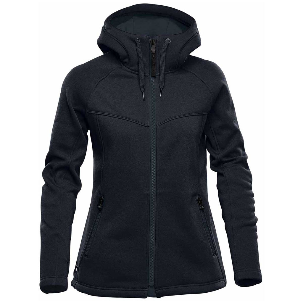 Stand out in a crowd in a custom embroidered Stormtech Women's Navy Logan Performance Hoody. The bold look of this hoody with a complementary zipper on the front and pockets makes it perfect for a great outdoor adventure. Created from a premium quality polyester outer layer that is bonded to Sherpa fleece, this hoody was built to last. The fully lined scuba hood offers added protection on this hoody that can carry your company logo or corporate embroidery with pride and flair. Perfect as a corporate gift or as end of the year gifts for employees who have given their all, this well-made hoody will be enjoyed.Corresponding Men's Style: Stormtech Men's Navy Logan Perforamance Hoody