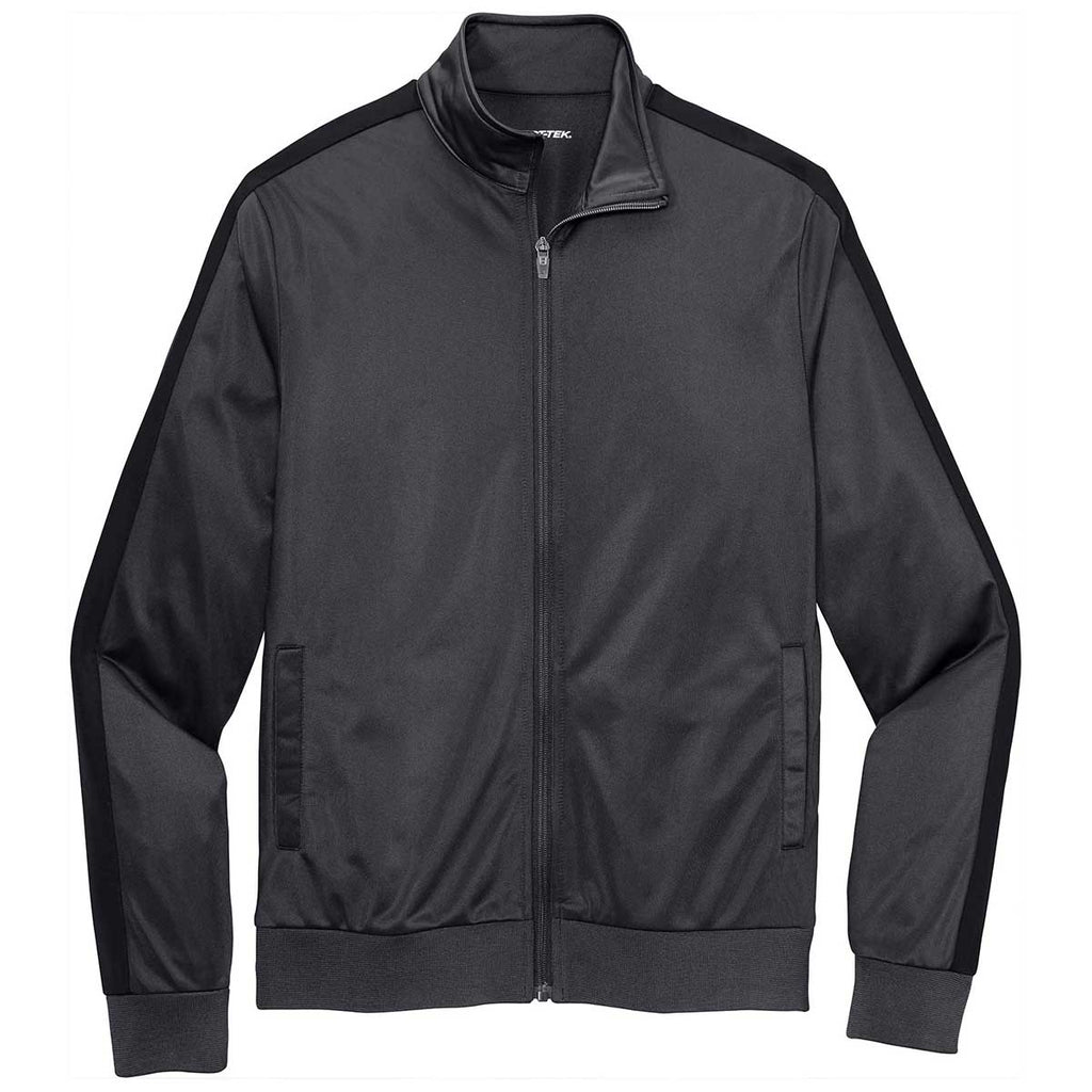 Enjoy the classics with a custom embroidery Sport-Tek Men's Graphite Grey/Black Tricot Track Jacket. Keeping with tradition, this track jacket has a pieced stripe down the arms and rib knit cuffs and hem. Perfect for wearing over a track jerseys and shorts, this 100% polyester tricot jacket is a must have for team events. Embroider a corporate name to show sponsorship or a team name and mascot to build comradery. The cadet collar adds warmth and front pockets keep small items at hand when needed. For those in certain industries, these jackets could serve as company uniforms with a company logo embroidered on. Place an order today to use these in any way you or your organization sees fit.Corresponding Women's Style: Sport-Tek Women's Graphite Grey/Black Tricot Track Jacket