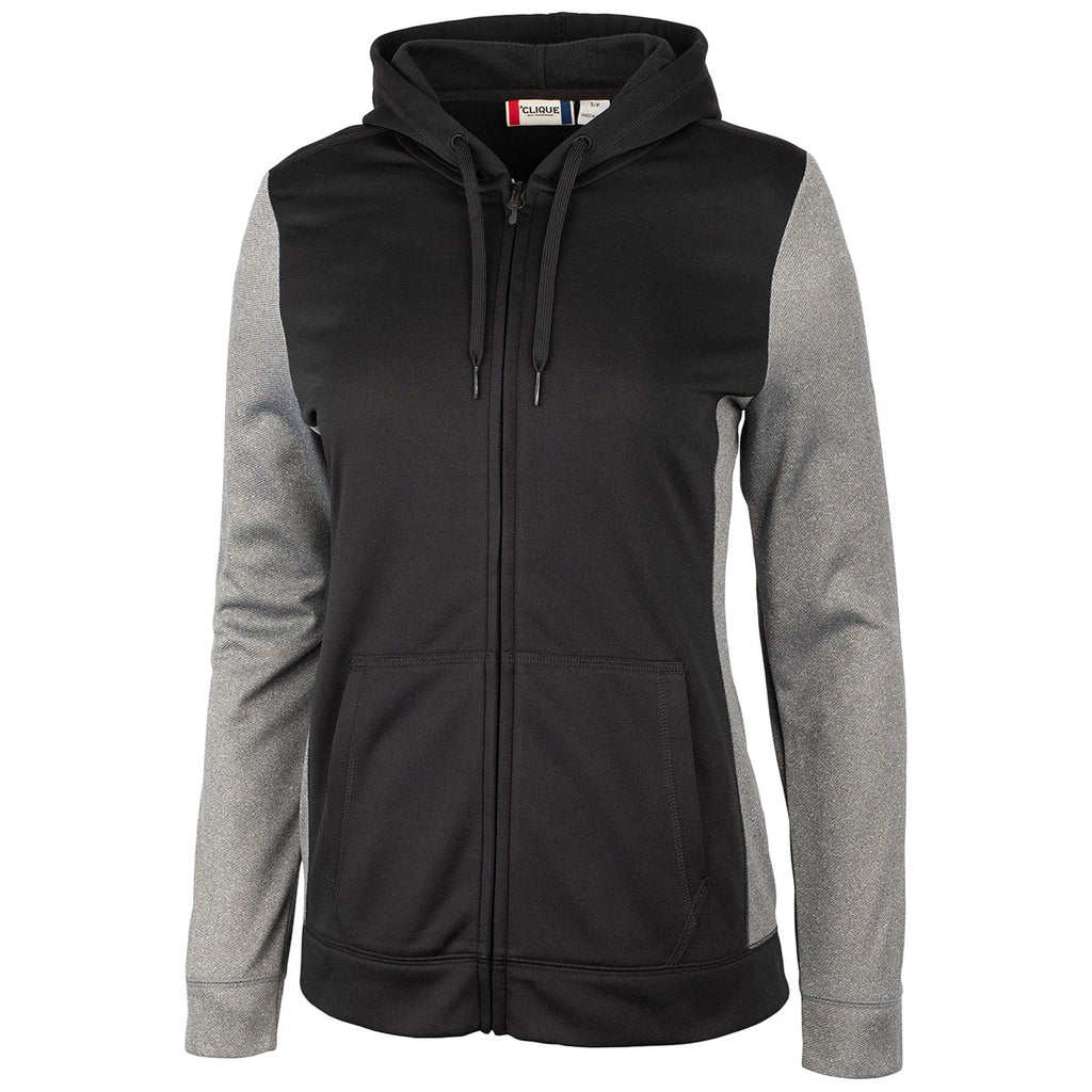 The Clique Women's Black Helsa Sport Colorblock Full Zip sweatshirt is sure to be a weekend favorite. With a custom logo added to the front, you can wear a comfortable sweatshirt and advertise your company name at the same time. Buy this item in bulk and hand it out as employee apparel or distribute it to guests at upcoming corporate events. With a variety of vibrant colors to choose from, you're sure to find at least one that makes your company logo stand out. Some of the product features include 100% polyester fleece material, full zip closure, hood with drawstrings, long sleeve cuffs featuring heather fabric, and dual front pockets.Corresponding Men's Style:Clique Men's Black Helsa Sport Colorblock Full Zip