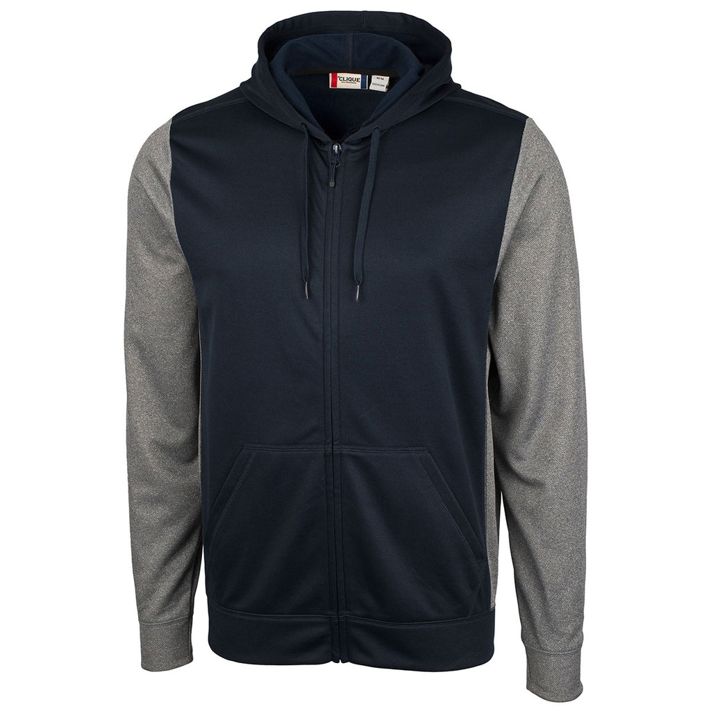 The Clique Men's Dark Navy Helsa Sport Colorblock Full Zip offers cozy comfort in a product you'll likely want to wear as often as possible. With a company logo added to the sweatshirt, you can advertise your company name and hand this out as employee apparel or to guests at corporate events. You have a variety of unique colors to choose from and you're sure to find the right color tone for your logo. Other features include a 100% polyester fleece material, attached hood with drawstrings, full zip closure, long sleeve cuffs in heather fabric, and dual pockets.Corresponding Women's Style:Clique Women's Dark Navy Helsa Sport Colorblock Full Zip