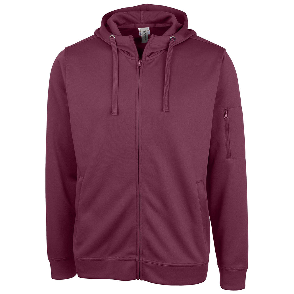 The Clique Men's Burgundy Lift Performance Full Zip Hoodie is the perfect sweatshirt to throw on quickly when you want to be comfortable after a long, hard day at the office. A custom logo can be added to the front which provides an easy way to advertise your company name. Choose from classic colors and enjoy fabulous product features including 100% polyester interlock fabric, attached hood with drawstrings, full zip closure, welt pockets, zip pocket on sleeve, and self-fabric banded hem and cuff. Purchase a few of these must-have hoodies as employee apparel and hand them out to the top earners at your company. In fact, why not give everyone a company hoodie.Highlights