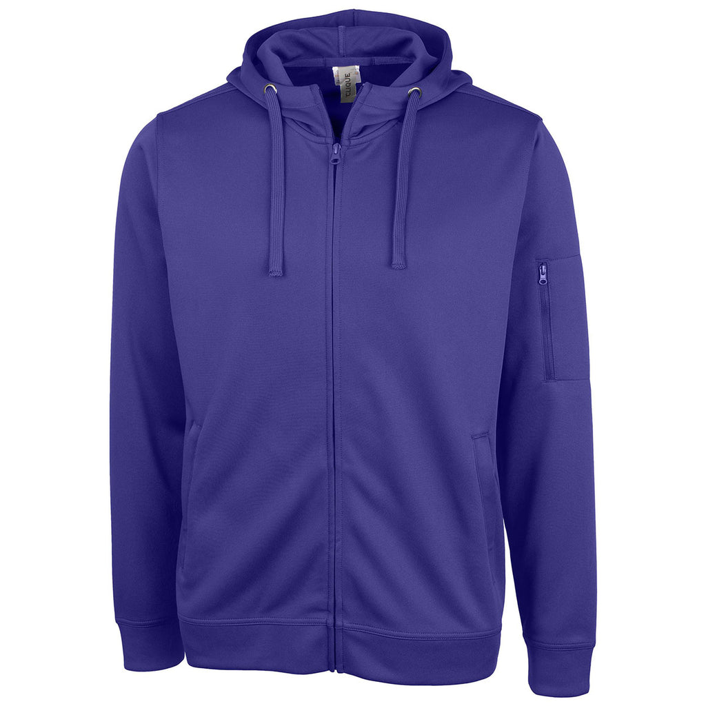 The Clique Men's Royal Purple Lift Performance Full Zip Hoodie is the perfect sweatshirt to throw on quickly when you want to be comfortable after a long, hard day at the office. A custom logo can be added to the front which provides an easy way to advertise your company name. Choose from classic colors and enjoy fabulous product features including 100% polyester interlock fabric, attached hood with drawstrings, full zip closure, welt pockets, zip pocket on sleeve, and self-fabric banded hem and cuff. Purchase a few of these must-have hoodies as employee apparel and hand them out to the top earners at your company. In fact, why not give everyone a company hoodie.Highlights