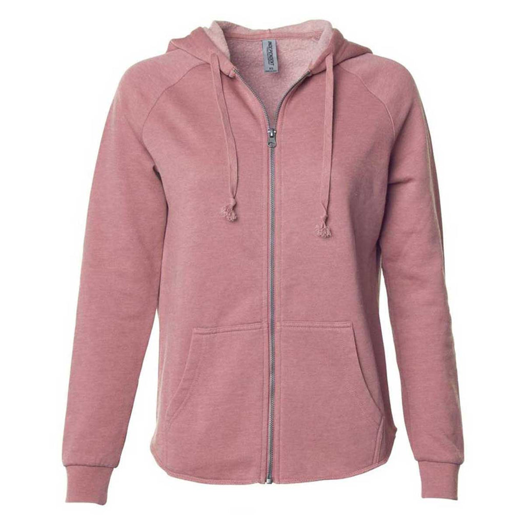 Independent Trading Co. Women's Dusty Rose California Wave Wash Full-Zip Hooded Sweatshirt