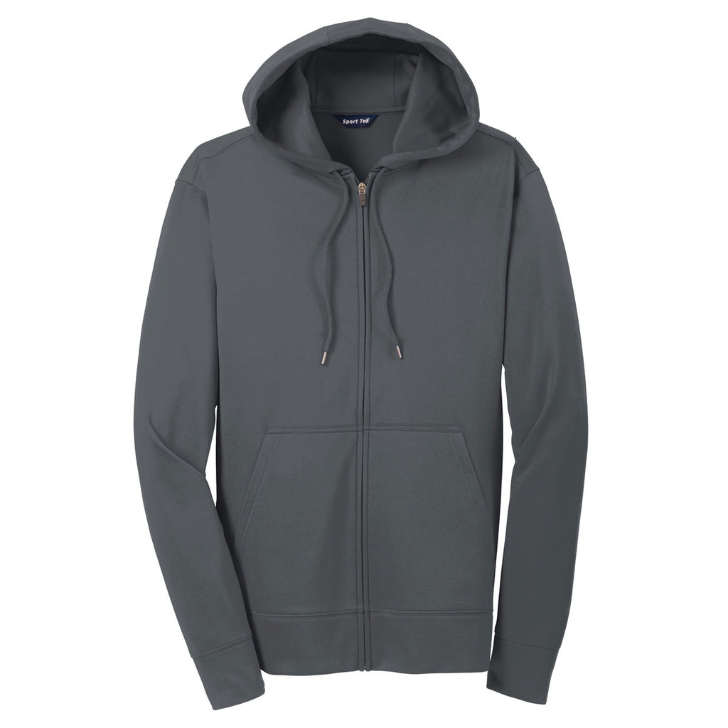 When the weather gets tough, so must you. That's the idea behind this Sport-Tek Men's Dark Smoke Grey Sport-Wick Fleece Full-Zip Hooded Jacket. Add your own custom embroidery to make this a piece of corporate apparel that anyone can enjoy. Layering is ideally suited to serve as your canvas, and this is an item that will work for you in the elements, not against.Corresponding Women's Style:Sport-Tek Women's Dark Smoke Grey Sport-Wick Fleece Full-Zip Hooded Jacket