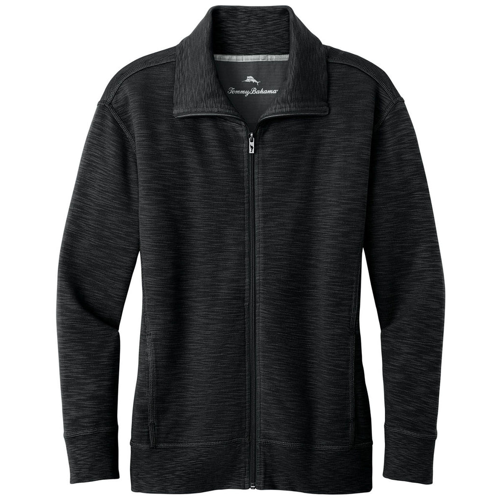 The Tommy Bahama Women's Black Tobago Bay Full-Zip with a custom logo offers a relaxed yet refined look perfect for casual outings and professional environments. Crafted from soft, breathable fabric, it provides superior comfort with a flattering fit. This versatile jacket combines style, comfort, and performance, whether enjoying leisure time or commuting.This product can only ship within the United States and Canada.