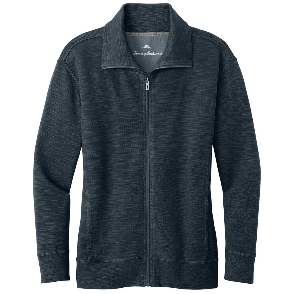 The Tommy Bahama Women's Blue Note Tobago Bay Full-Zip with a custom logo offers a relaxed yet refined look perfect for casual outings and professional environments. Crafted from soft, breathable fabric, it provides superior comfort with a flattering fit. This versatile jacket combines style, comfort, and performance, whether enjoying leisure time or commuting.
