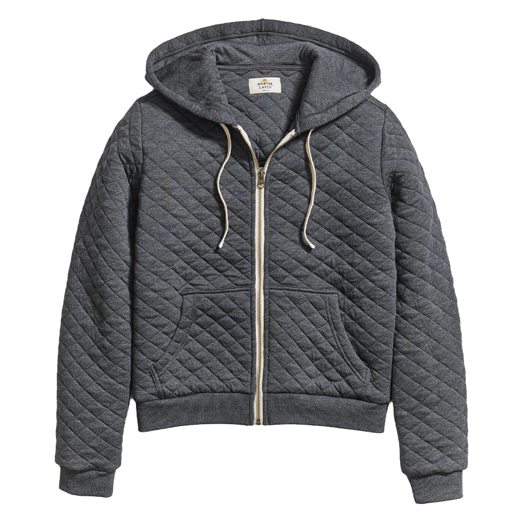 Marine Layer Women's Dark Heather Grey Corbet Quilted Full Zip Hoodie