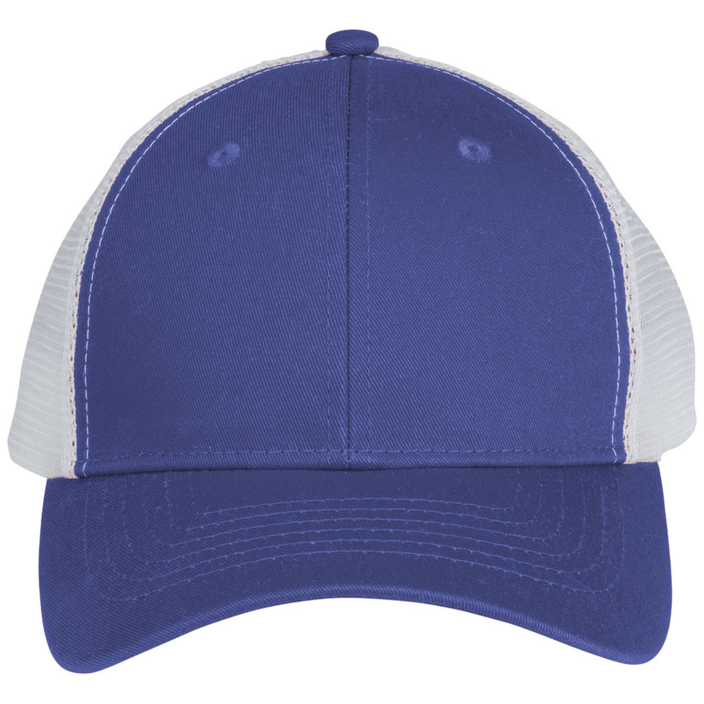 Be a classic in a custom logo Vantage Royal Clutch Trucker Cap. This pop culture favorite has 100% cotton twill front panels and polyester white mesh back panels to create the iconic look. Add a company logo to the cap to offer as employee gifts for nearly any occasion. The one size fits all design has an adjustable snap back closure for fit. A pre-curved visor, sewn eyelets, and mid-profile design complete the look that has been around for many years. Add this look to your logoed apparel line and draw in new customers young and old.Highlights