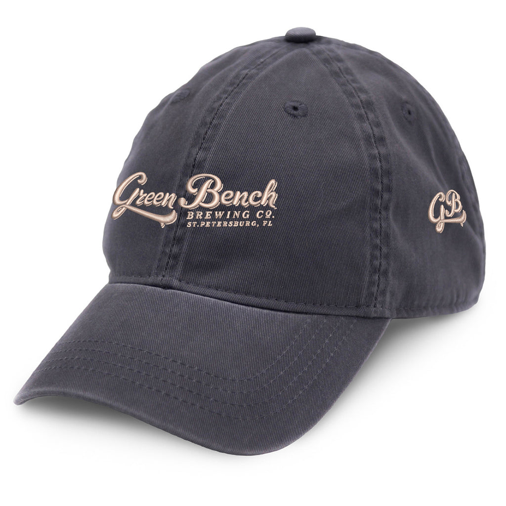 Merrimack Hat Co. Charcoal Cooper Cap with a custom logo is a creative way to showcase your organization, style, or logoed apparel line. Great for wearing while golfing, playing ball, or just hanging out, this hat has unstructured panels, a curved brim, and a low crown. The self-fabric strap with antique brass buckle closure allows for a one-size-fits-most design.