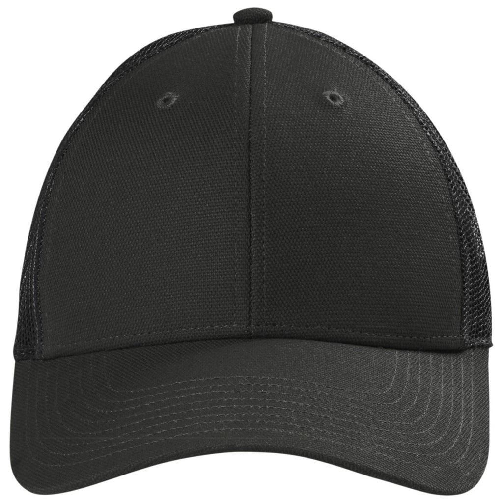 Choose your embroidery for the CornerStone Black Canvas Mesh Back Cap to showcase your name, brand, or company as needed. This mesh back cap, in trucker like style, is fun and convenient. Made of 100% cotton canvas on the two-panel front with a 100% polyester woven mesh on the back panels, the cap has a moisture wicking sweatband and adjustable snapback for a one size fits most type sizing. Mid-profile and structured, this cap is great with a custom logo for sportswear or daily wear for those who so choose.Highlights