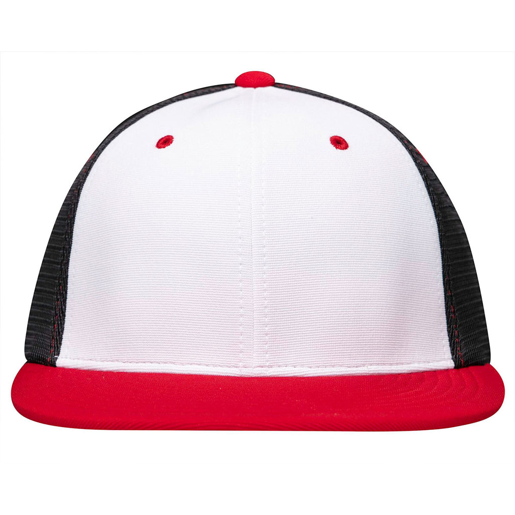 Add embroidery to the Pacific Headwear White/Black/Red Premium M2 Performance Trucker FlexFit Cap for a new take on a true classic. This trucker mesh performance mesh cap has a pro-stitch finish that is durable enough for daily wear as employee apparel or while hanging with friends. Add a custom logo to start building your logoed apparel line with this perfect combination of form, fashion, and function. The FlexFit cap has anti-microbial properties, moisture wicking, and is stain resistant. The full-profile design with a flat visor has a closed back for a one size fits most creation that will be an instant hit.Highlights