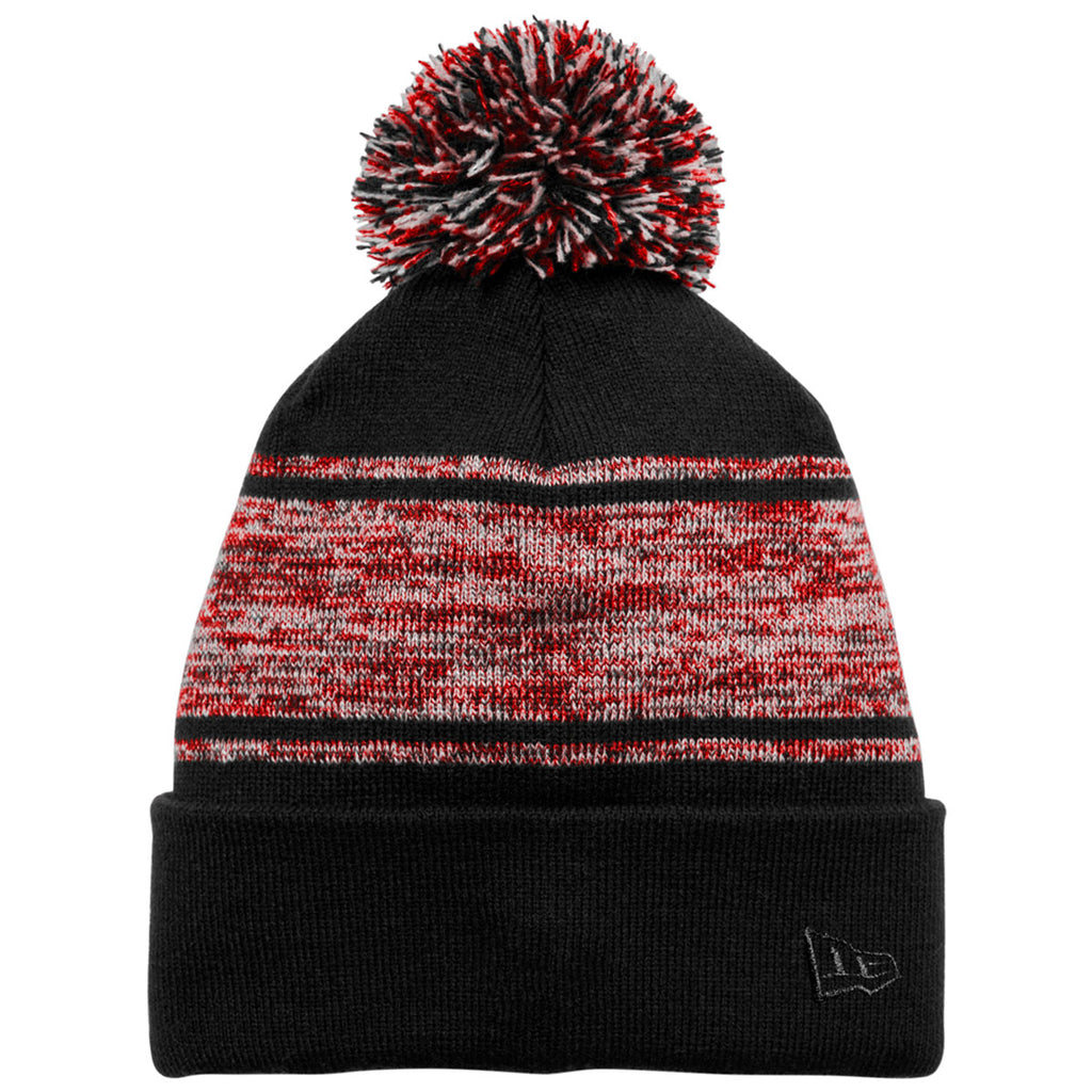 Add a custom logo to the New Era Black/Scarlet Knit Chilled Pom Beanie to create an on-trend look in a one-size-fits-most style. The 100% acrylic beanie is fun, colorful, and functional, whether heading into work, hitting the black diamond slopes, or building snowmen in your yard. Place an order today; these will not last.This product cannot ship outside of the United States.